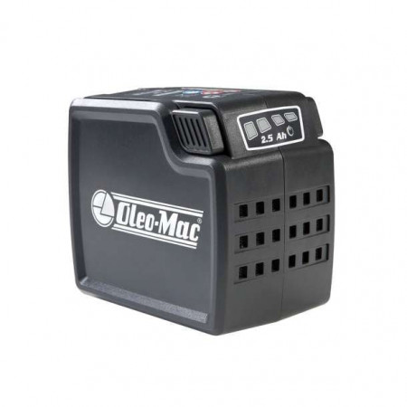 Перезаряжаемая батарея Oleo-Mac Bi (5,0 Ач). Совместима с аккумуляторной техникой Oleo-Mac GSi 30, BCi 30, BVi 60, HCi 45. Время зарядки 220 мин. Напряжение 40 V. Технология - литий-ионные элементы. Индикатор зарядки - 4-уровневая LED-шкала. Вес 1,3 кг.