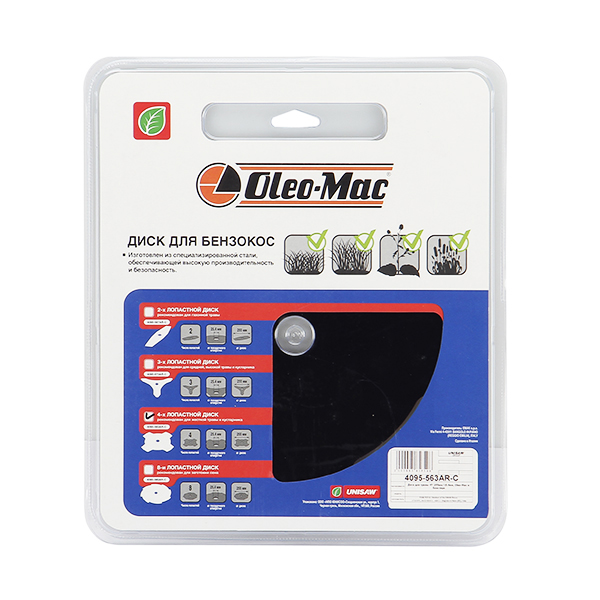 Четырехлопастной диск для бензокос Oleo-Mac (арт. 4095-563AR) в блистерной упаковке. Нож, сделанный из закаленной стали, предназначен для срезания травы и сорняков. Диаметр 255 мм. Толщина 1.4 мм. Отверстие 25,4 мм. Подходит для бензокос моделей: SPARTA 25 S / SPARTA 250 S SPARTA 25 / SPARTA 250 T SPARTA 44 / SPARTA 440 T SPARTA 42 BP / SPARTA 440 BP BC 24 S / BC 240 S BC 24 T / BC 240 T BC 280 S / BC 280 T BC 320 S / BC 320 T BC 350 S / BC 350 T BC 380 S / BC 380 T BC 430 S / BC 430 T / BC 430 TL 746 S / 746 T 753 S / 753 T 755 MASTER BCF 430 446 BP ERGO 453 BP ERGO BC 360 4S / BC 360 4T BC 250 S, 725 S / 725 T / 725 D 725 S ERGO / 725 T ERGO BC 260 4S 730 S / 730 T 735 S / 735 T 740 S / 740 T BC 420 S / BC 420 T / BCF 420 435 BP / 440 BP SPARTA 25 D BC 280 D SPARTA 37 / SPARTA 370 SPARTA 42 / SPARTA 42 S SPARTA 44 FE