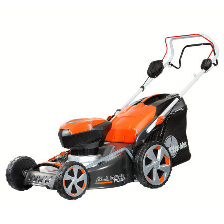 Oleo-Mac Gi 48 T — самоходная аккумуляторная газонокосилка с шириной захвата 46 см и четырьмя функциями: сбор травы в травосборник, боковой выброс, задний выброс и мульчирование. Поставляется без аккумулятора и зарядного устройства.