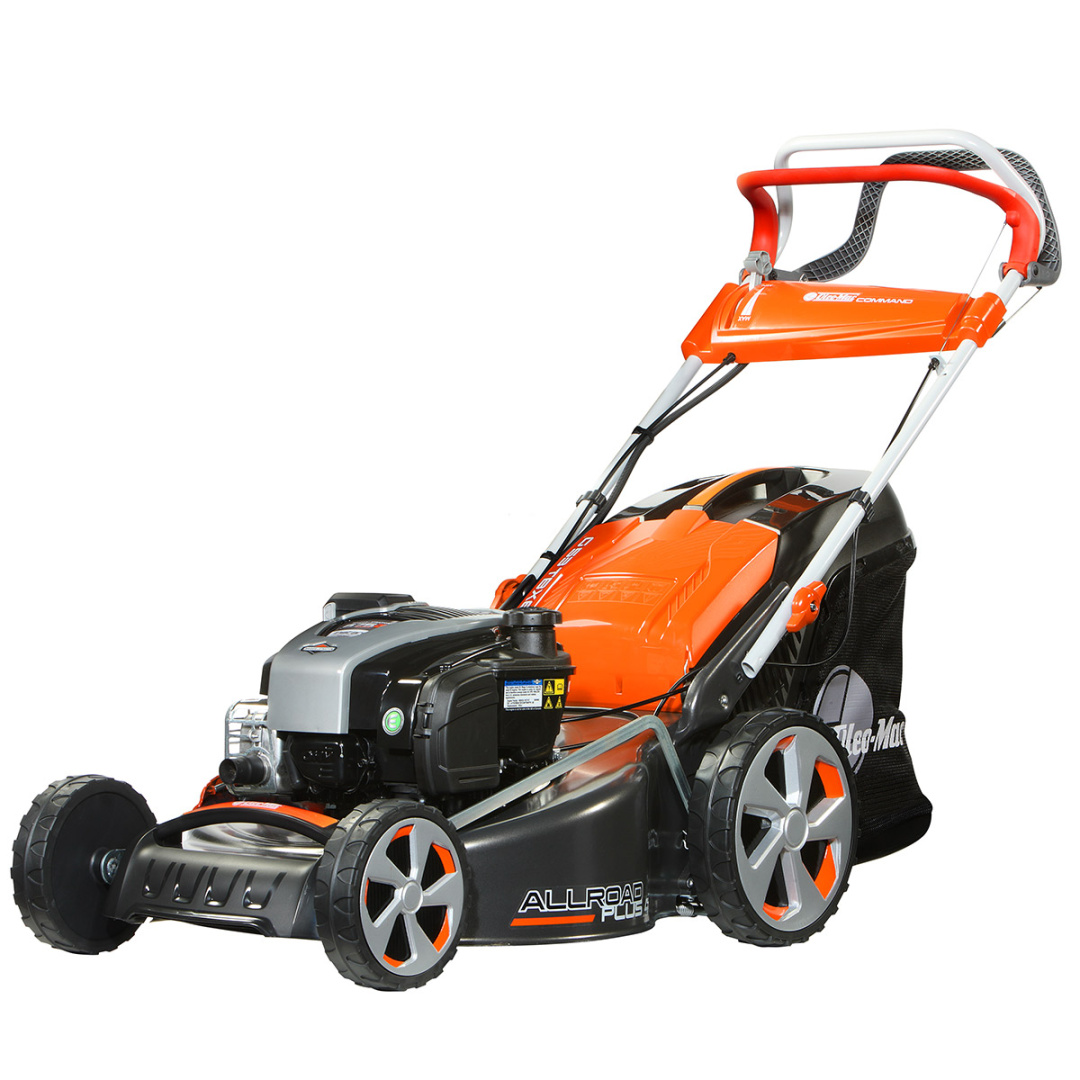 Газонокосилка Oleo-Mac G 53 TBXE Allroad Plus 4 — бензиновая самоходная модель со стальным корпусом, электростартером, системой 4 в 1 (задний выброс травы, сбор в травосборник, мульчирование или боковой выброс) и колесами большого диаметра, позволяющими свободно перемещаться по неровным поверхностям.