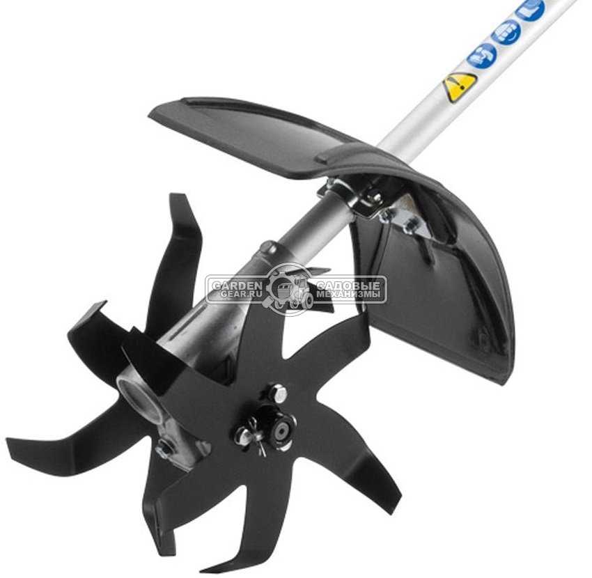Культиватор для обработки небольших огородов. Устанавливается на бензокосы CAIMAN VSP255S. Оборудован почвоуглубителем, позволяющим регулировать глубину вспашки, и ножами из специальной стали повышенной прочности. Ширина фрез: 200 мм.