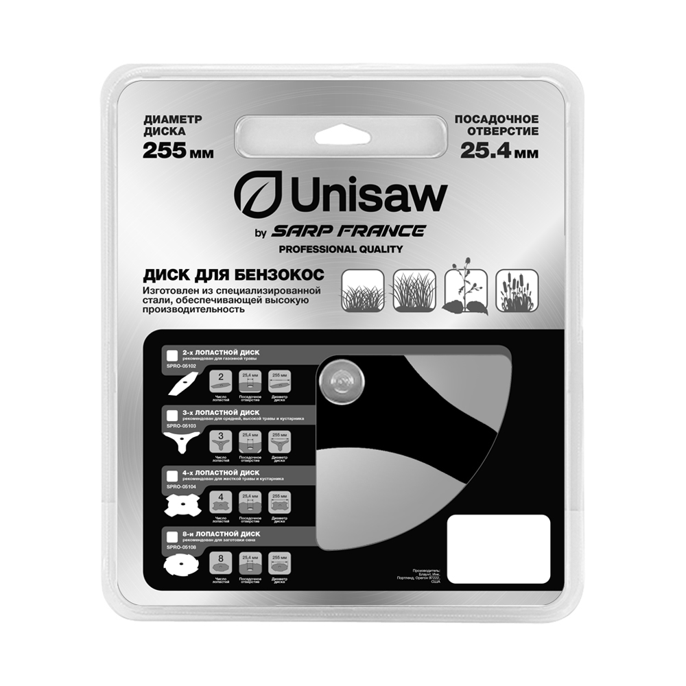 Диск для бензокос Unisaw by SARP из закаленной стали. Подходит для большинства моделей бензокос, допускающих установку металлических дисков. Количество зубьев 3. Диаметр 255 мм. Посадочное отверстие 25,4 мм. Толщина диска 1,4 мм.